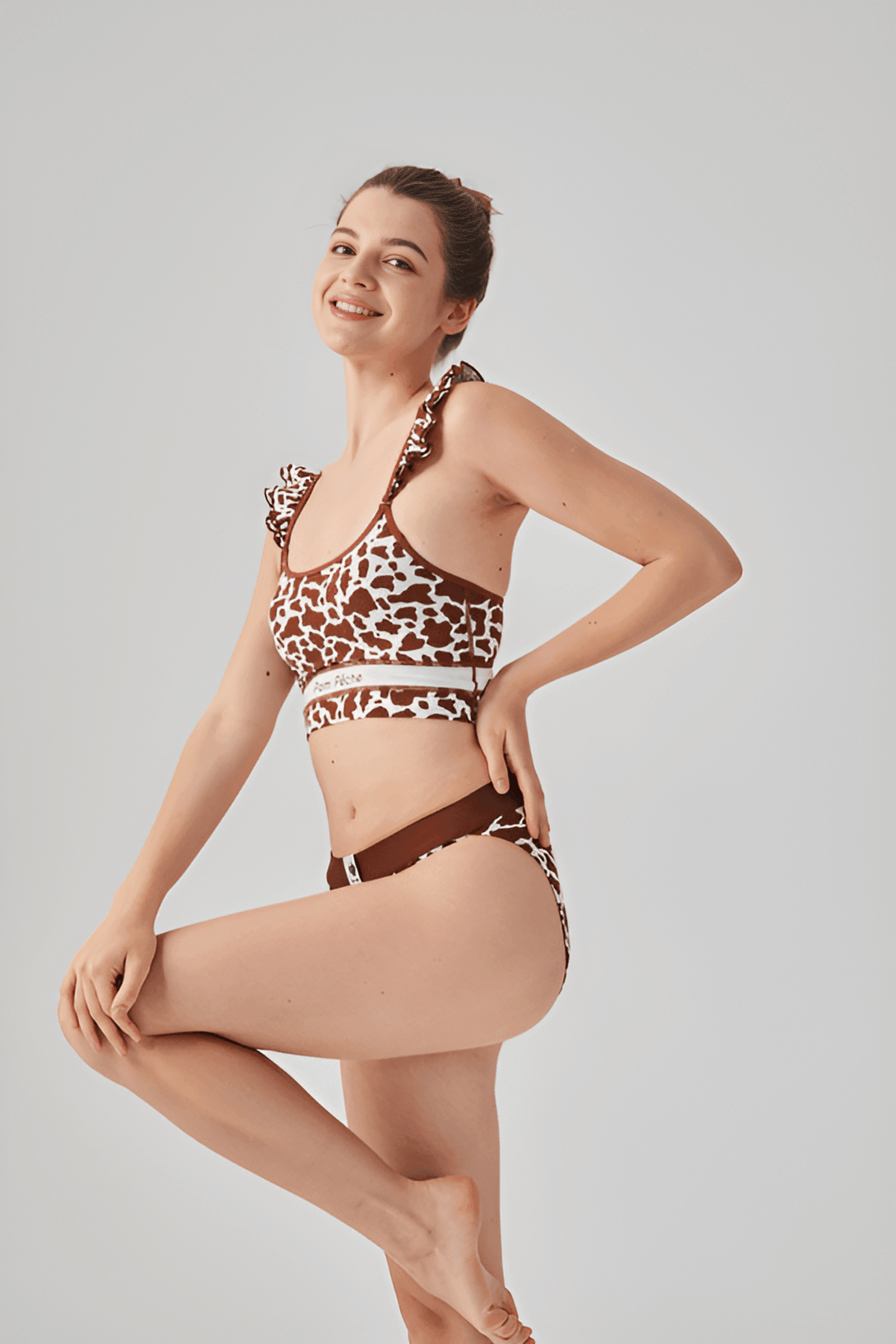 Momo Femme Brief Fendu à Motif Vache Marron