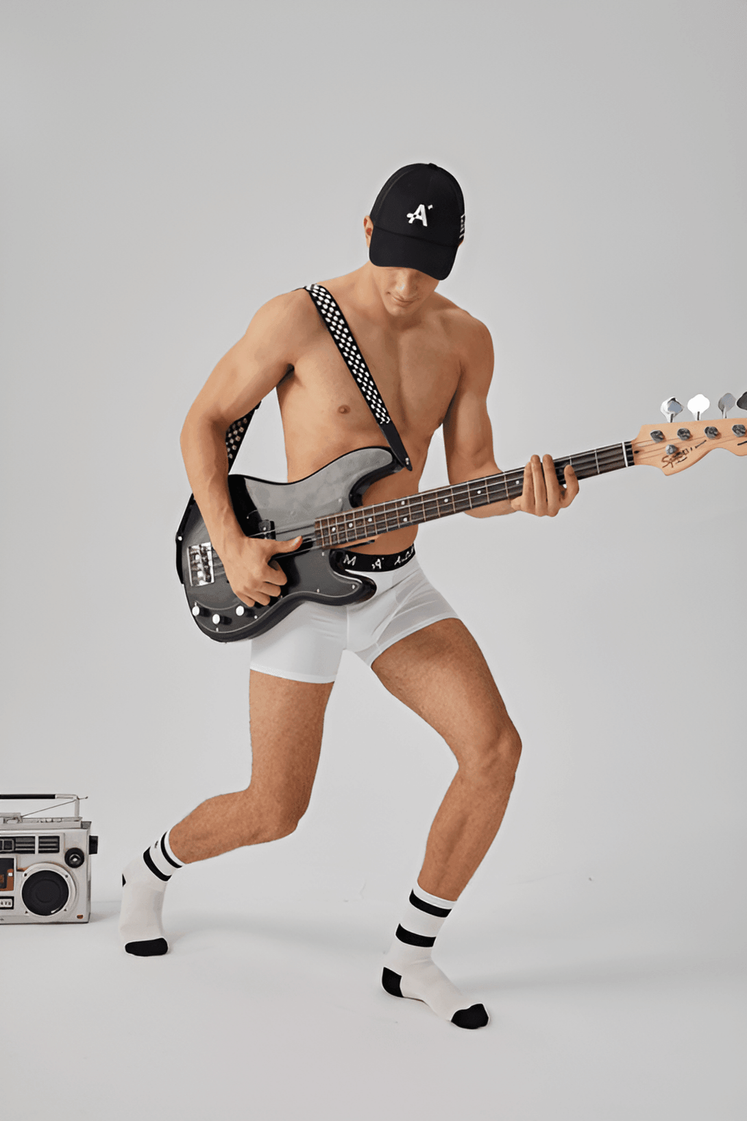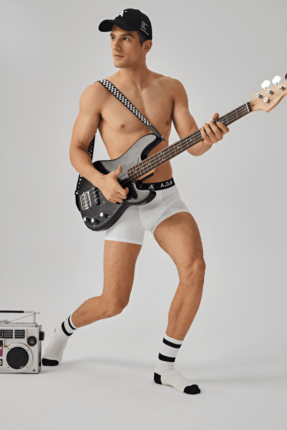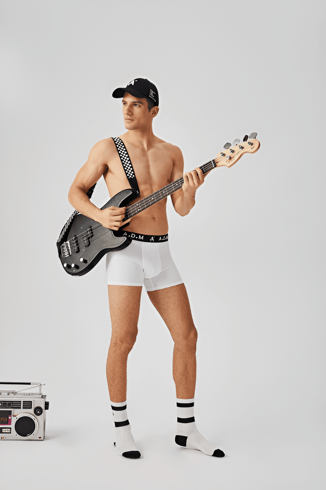 スタイリッシュなクラシックホワイトプリントの男性用クーリングボクサー