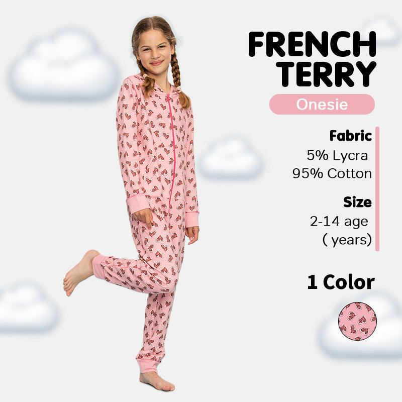 女の子用ロングスリーブフレンチテリーオールインワン - ピンク