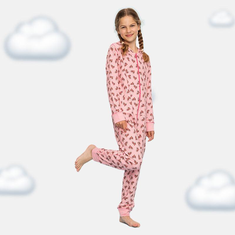 Flickors långärmad fransk terry jumpsuit - Rosa