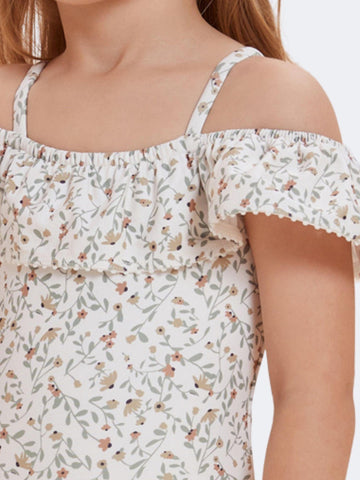 ชุดว่ายน้ำวันพีซและแบบเปิดไหล่สำหรับเด็กผู้หญิง - สีเบจ