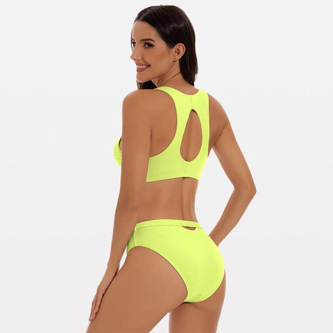 • การออกแบบ: ชุดว่ายน้ำกันรั่วมีดีไซน์ท็อปบิกินี่แบบหลังแข่งและกางเกงบิกินี่แบบต่ำที่ออกแบบทางสรีรวิทยา.