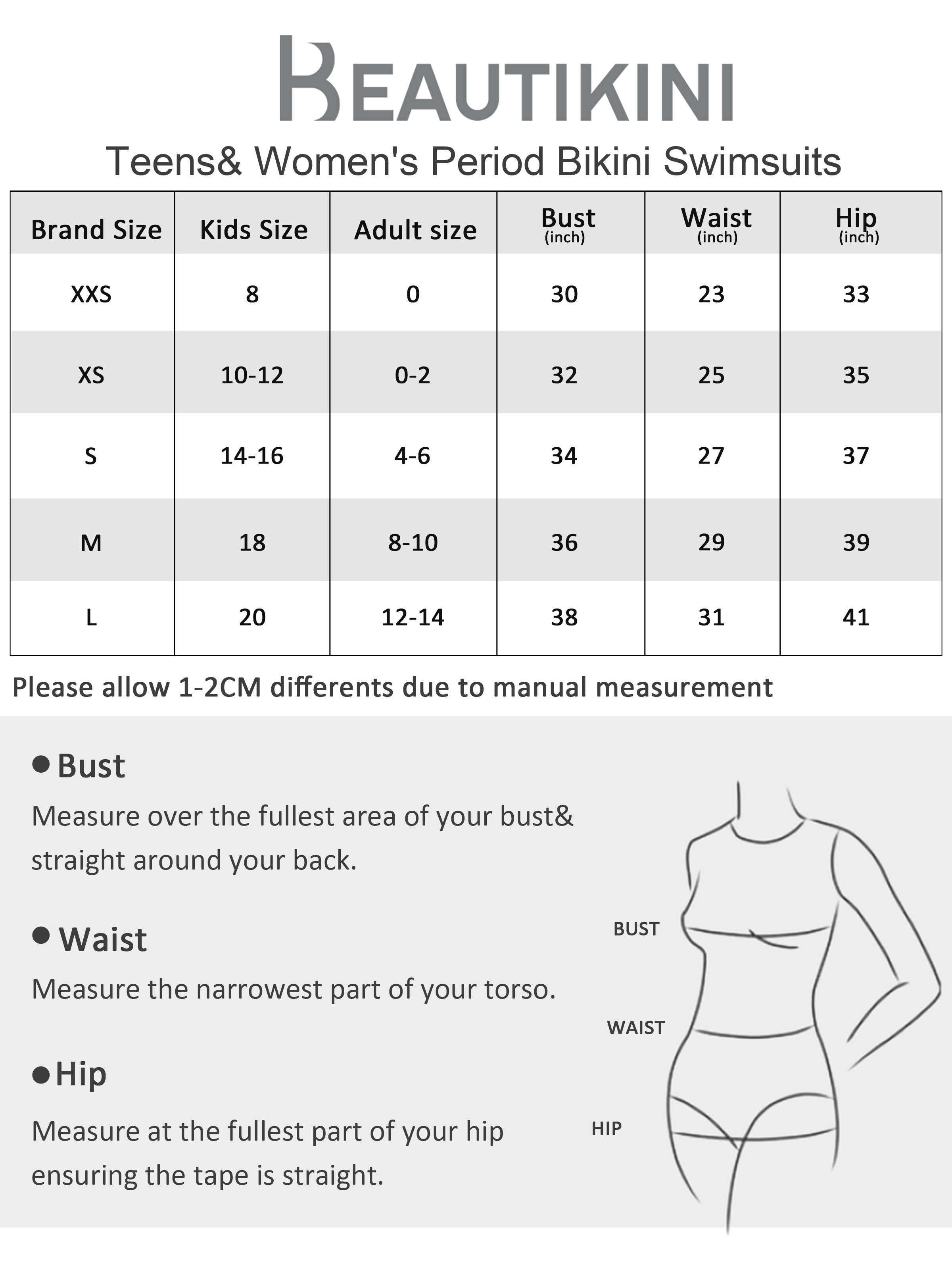 เพลิดเพลินกับความมั่นใจในสไตล์และอิสระเต็มที่ในน้ำได้ทุกวันของเดือนกับชุด Beautikini ชุดว่ายน้ำประจำเดือนเอวต่ำกันรั่ว ชุดบิกินี่นี้ผสมผสานการตัดเอวต่ำที่ทันสมัยกับการป้องกันที่คุณวางใจได้