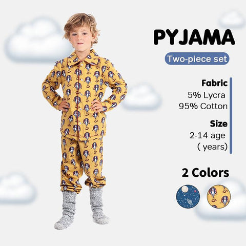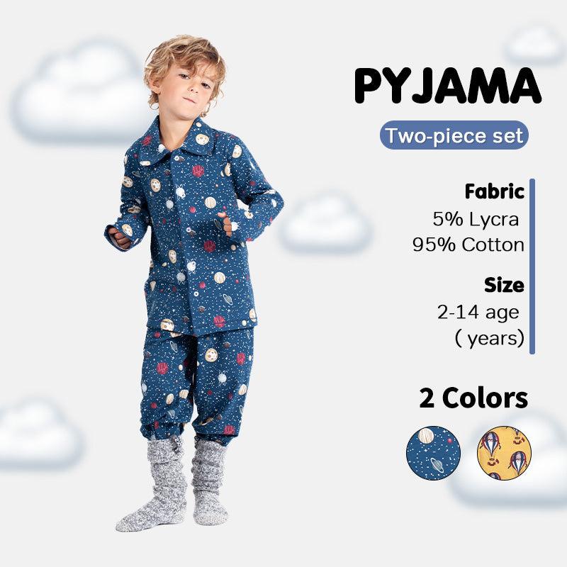 ชุดนอนแขนยาวสำหรับเด็กผู้ชาย - ล่องลอยบอลลูน & ลายดาวเคราะห์