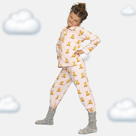 ชุดนอนแขนยาวสำหรับเด็กผู้หญิง - ลายกระต่ายและลายซิกแซก