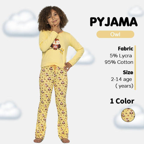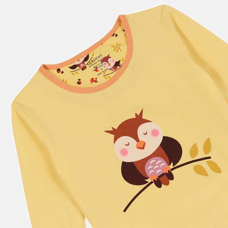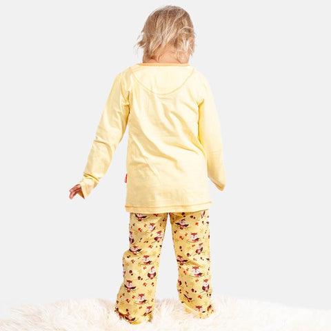 ชุดนอนแขนยาวสำหรับเด็กผู้หญิง - ลายฮูกสีเหลือง