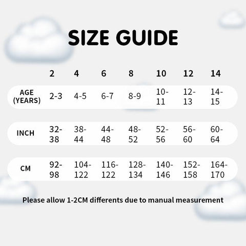 ขนาด2(92-98), ไซส์4(104-110), ขนาด6(116-122), ขนาด8(128-134), ไซส์10(140-146), ขนาด12(152-158), ขนาด14(164-170) |